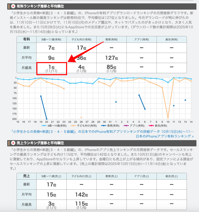 実は、とあるカテゴリーで1位になったのですが、そのカテゴリーというのが「9歳から11歳向け有料アプリ」。