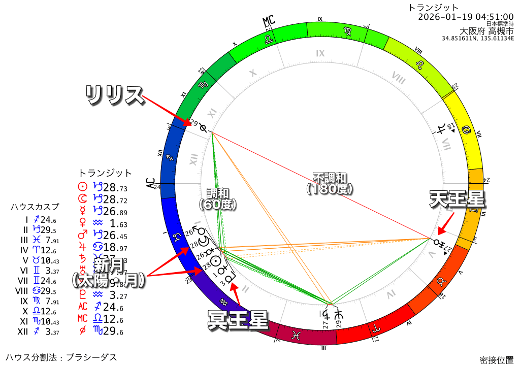 - それとあすコロ大好き、世の中の闇を暴くリリスも調和的な角度にいる